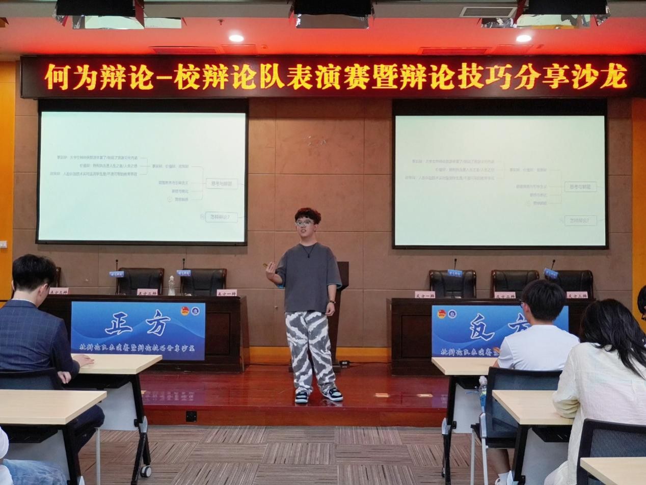 赛后,第二十三届校辩论队队长刘星宇结合自身参赛经验,从立论构建、论点拆解、语言表达和赛场心态等方面进行了系统的辩论技巧分享。他通过具体案例解析,深入浅出地讲解了辩论实战中的关键要点,为在场师生提供了实用的方法论指导。