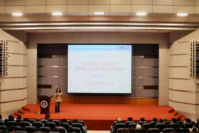 王亚琳围绕赛事当天的时间节点展开讲解,重点梳理各区域完赛物资发放流程。要求志愿者优化服务流程,确保完赛通道快速通畅,为15000名半马参赛选手提供优质的完赛物资领取体验。