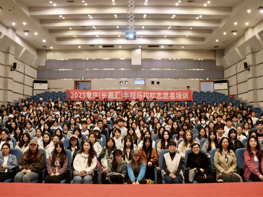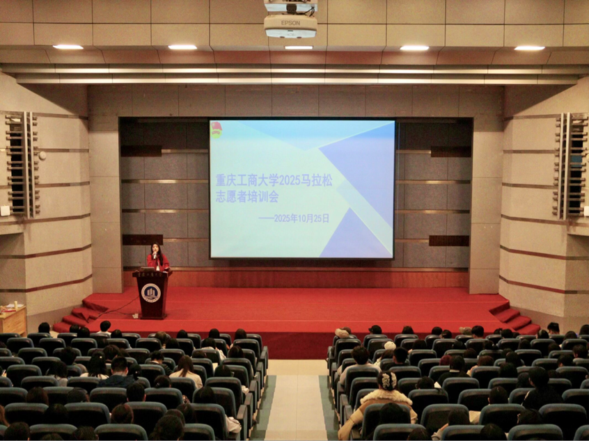 为提升志愿者服务专业能力,保障2025重庆(长嘉汇)半程马拉松赛事志愿服务工作高效有序推进,10月25日,重庆工商大学青年志愿者协会联合重庆重马体育发展有限公司,在该校南岸校区博智楼07100学术报告厅举办2025重庆(长嘉汇)半程马拉松赛事专项志愿者培训会。本次培训会由校青协主席杭睿怡主持,重庆(长嘉汇)半程马拉松组委会王峰、王亚琳两位老师出席,3名带队老师和291名工商大学志愿者参与培训。