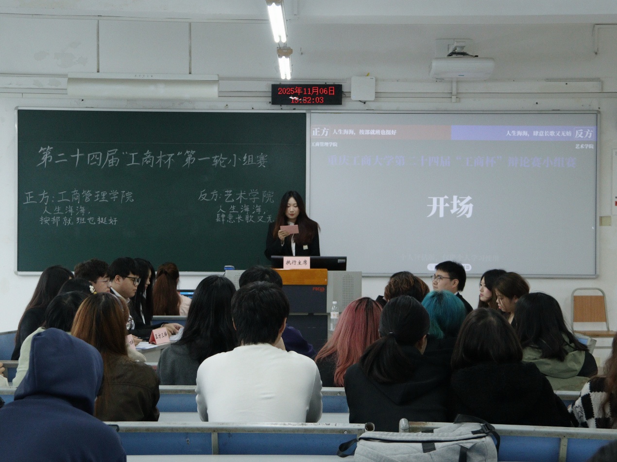 为点燃大学生的思辨激情,强化团队协作能力,提升语言表达艺术,彰显新时代大学生的青春活力与全面素养,11月6日,由校团委主办的第二十四届“工商杯”大学生辩论赛小组赛(第一轮)共计5场比赛,在南岸校区和茶园校区同步举行。