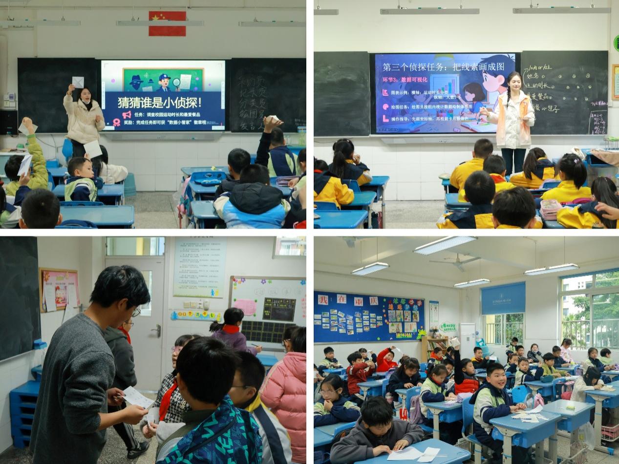 大数据协会以“数据收集小侦探”活动为线索,引导四年级学生留意生活中的各类数据。活动以“校园运动时长”和“最受欢迎餐品”为例,学生小组合作收集数据、分类整理,并通过制作简单图表进行初步可视化分析,帮助他们感受数据在生活中的实际应用。