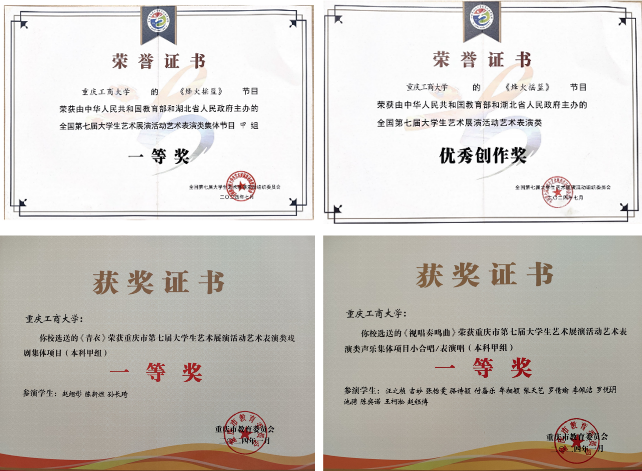 美育呈现新精彩。实施美育浸润行动,加强学校美育建设,打造高质量的文艺晚会,承办重庆市“校园之春”文化艺术体育活动,承办重庆市第七届大学生艺术展演活动开幕式,积极组织参与高雅艺术进校园、“金色之秋”川渝大中专学生展示交流活动等。加强文艺精品产出,打造原创舞蹈《烽火摇篮》,时隔十年再次荣获大学生艺术展演舞蹈类全国一等奖、优秀创作奖,学校获优秀组织奖;围绕“学党史、强信念、跟党走”主题创作的舞蹈《我们也有一面旗》、朗诵《爷爷的插旗山》《风从南山起》获第六届重庆市大学生艺术展演一等奖;献礼五四百年的原创MV《青春不一样》成为青年中的“爆款”;获第七届大学生艺术展演国赛奖2项,市赛奖57项。2024年全市学校体育卫生艺术国防教育工作暨青少年校园足球工作推进视频会议,党委常委、副校长李国军作为唯一高校代表参会并作《“三个突出”实施美育浸润行动》的主题发言。