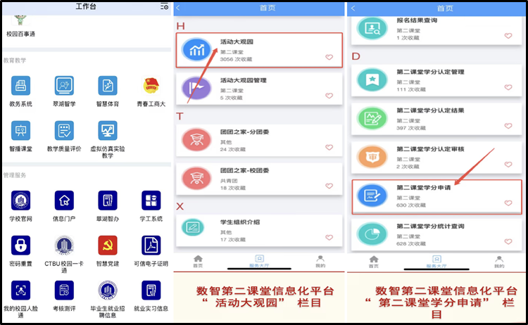 数智第二课堂进入新阶段。推动数智共青团系统提档升级,通过数字化手段优化管理流程、提升服务效能、强化网络育人功能,为全校青年学生的全面发展提供有力支持与保障。持续抓好团属媒体等网络思政阵地管理,推进数智共青团建设,优化数智第二课堂、推优入党、智慧团建等线上平台建设,实现网络建团100%。“十四五”期间,“青春工商大”数智第二课堂体系平台共发布1865场团学活动,报名参加活动同学达203359人次,认定第二课堂学分488942条。