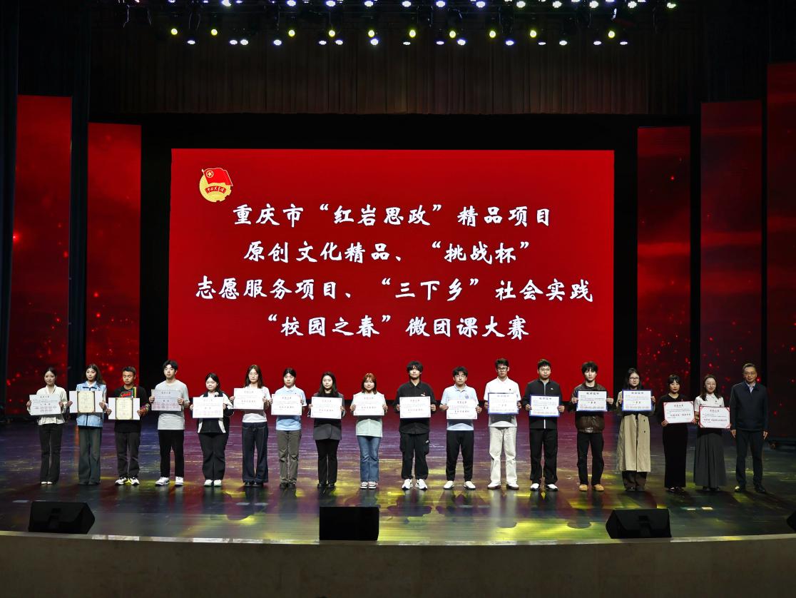 4月28日,我校2026年“闪光的青春”主题艺术思政课暨五四表彰大会在学校剧场隆重举行。学校党委书记曾维伦,党委副书记唐勇,党委常委、副校长张波,党委常委、副校长李国军,党委常委、纪委书记张海燕,党委常委、副校长任毅出席活动。党政办、纪检监察室、组织部、宣传部、学工部、研工部、教师工作部、教务处、招就处、校团委部门负责人,各学院党委(党总支)书记、副书记,各学院团委负责人,青年教师、青年团员代表共800余人参与活动。