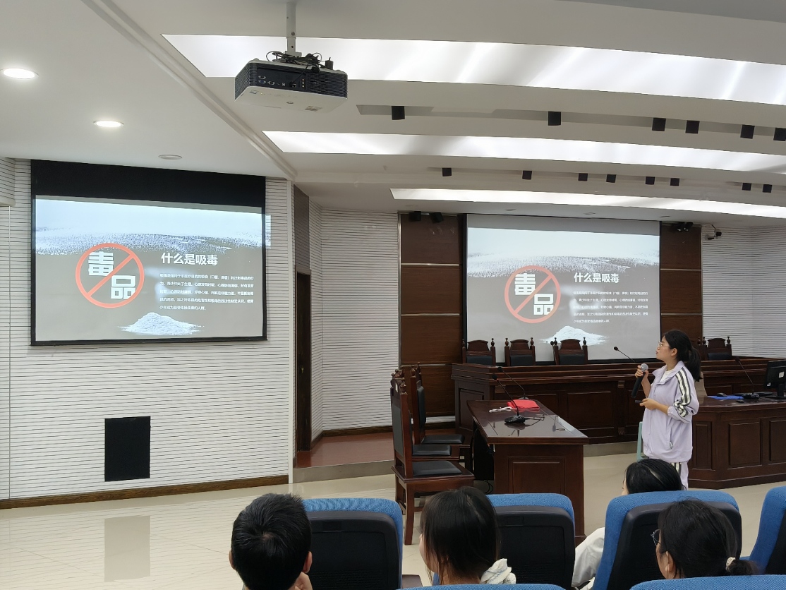 为加深重工商大学子对毒品危害的认识并宣传禁毒知识,10月13日,由法学与社会学学院分团委主办,大学生廉洁文化研究会承办的“青春不‘毒’行,安全伴我行”禁毒修身主题分享会在慧智楼模拟法庭举行。