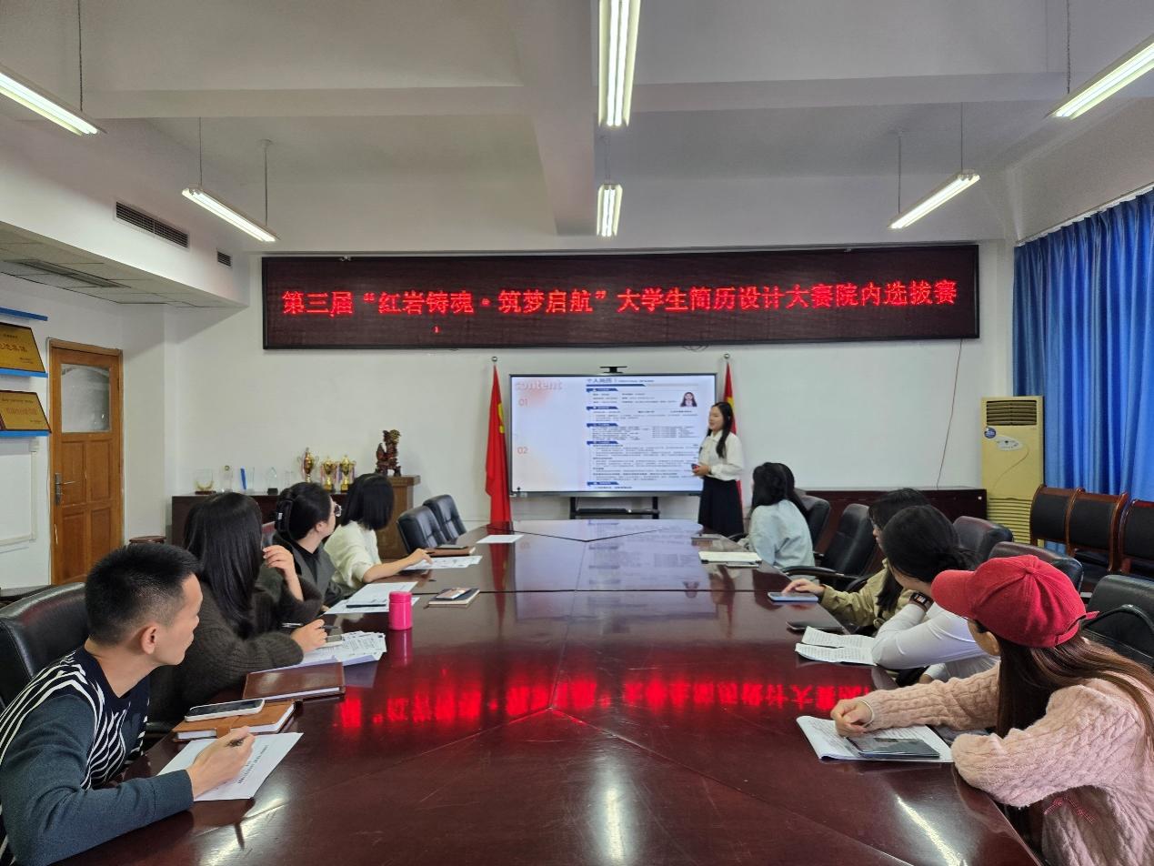 为提高青年大学生就业能力和综合素养, 10月23日中午,公共管理学院在81004会议室顺利开展第三届“红岩铸魂·筑梦启航”学生简历设计大赛院级初赛,从班级推选中脱颖而出的7位同学同台汇报,5位评委现场点评指导,为校级复赛选拔优质选手。