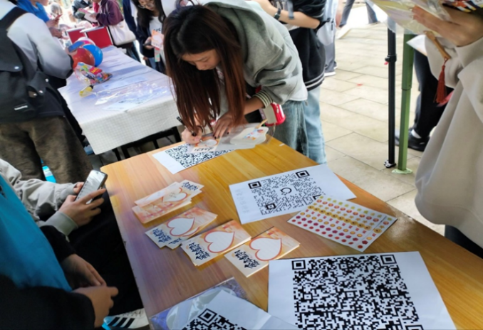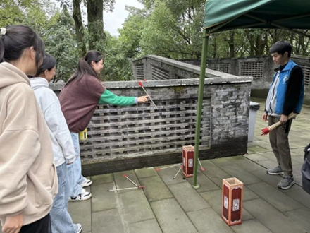 活动以游园会形式开展,设有“智趣灯谜廊”“古风投壶雅集”“秋意漆扇工坊”“心声传递暖心盲盒及收获奖励站”四大主题区域。同学们手持集章卡片,穿梭于各个区域,或凝神猜谜,或专注投壶,或精心绘制漆扇,处处洋溢着欢声笑语。不少同学在明信片上写下“三行寄心语”,表达对亲友的感恩和祝福。