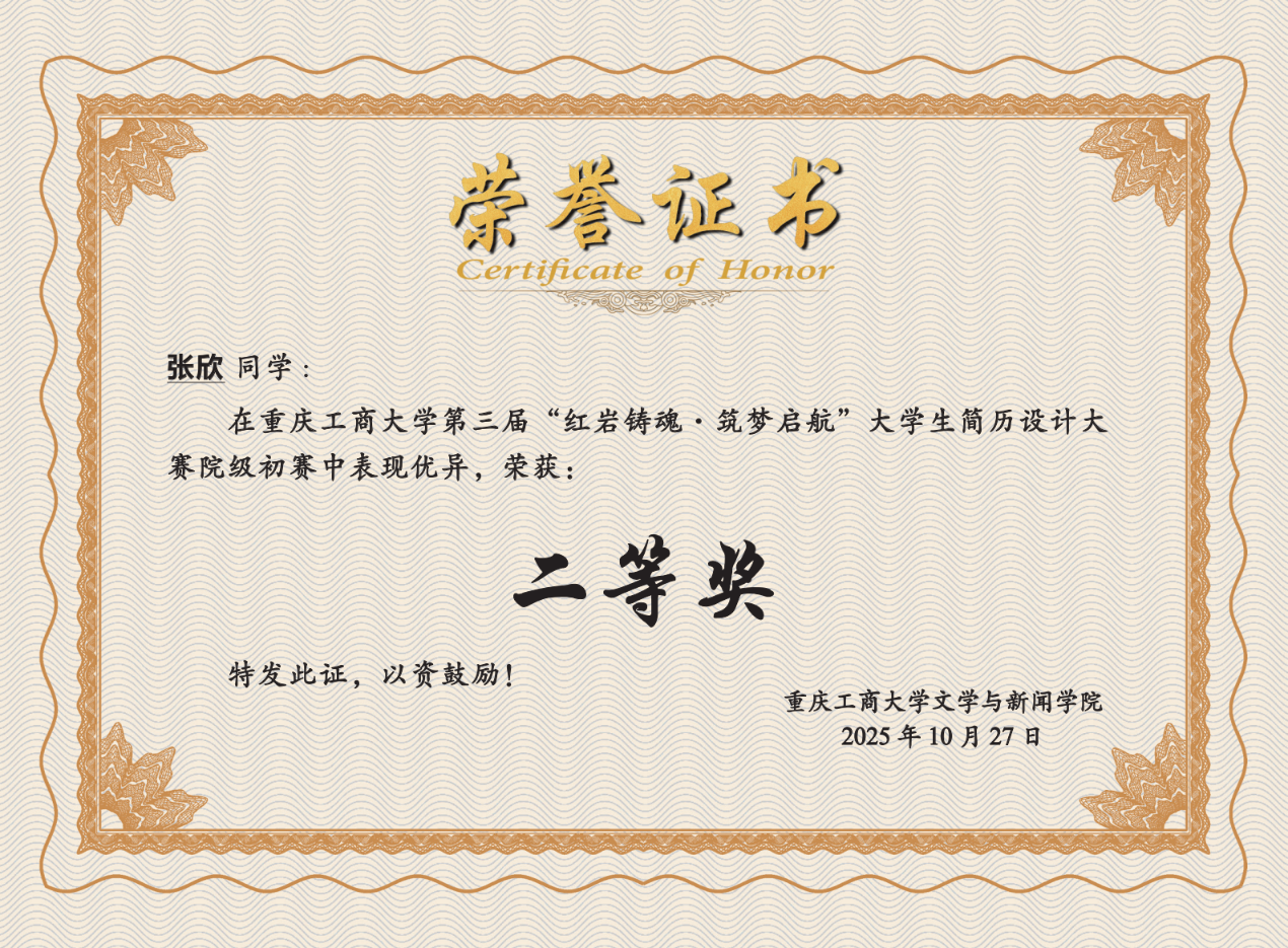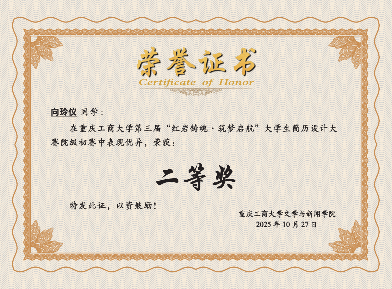 据了解,本次大赛遵循“院级初赛-校级复赛-校级决赛”的“三段式”比赛结构。各学院以班级为单位、以2024级全体学生为对象开展初赛,评选出班级一、二、三等奖各一名,由文学与新闻学院分团委从班赛获奖作品中遴选三份提交至校团委参加复赛。大赛通知犹如燎原之火,瞬间点燃了广大学子的参赛热情,大家踊跃报名、积极参与。截至10月24日,各班共计接收165份简历作品。