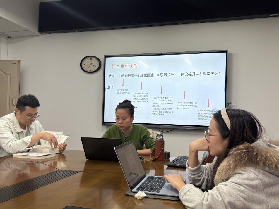 活动重点强化方法论训练。杨洁详细讲解材料支撑法、批判性思维在学术研究中的应用,强调论点需以扎实的文献、数据或案例为支撑,鼓励同学们在多元视角中形成独立判断。在理论联系实际环节,研究生们通过将文本观点与当代现实深度结合,不仅深化了对工人阶级形成理论的理解,更系统掌握了“以材料佐证观点、以问题引导阅读”的核心研习方法。
