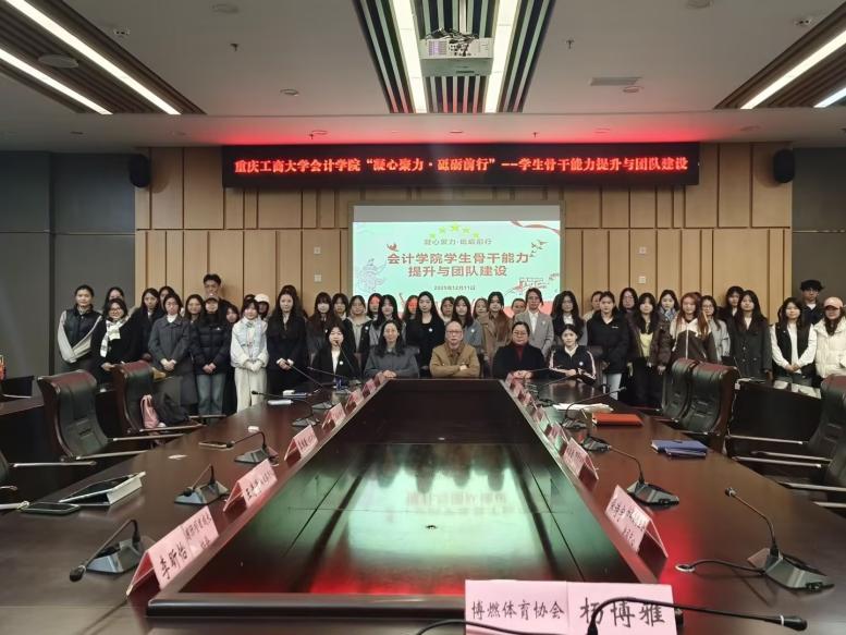 为强化学生骨干队伍建设,提升团队协作能力与综合素质,12月11日,会计学院在图书馆第五会议室开展了"凝心聚力,砥砺前行"主题学生骨干能力提升与团队建设活动。会计学院党委书记邓德敏、副书记郝颖、会计学院辅导员郑志欣以及60余名学生参加了此次活动。