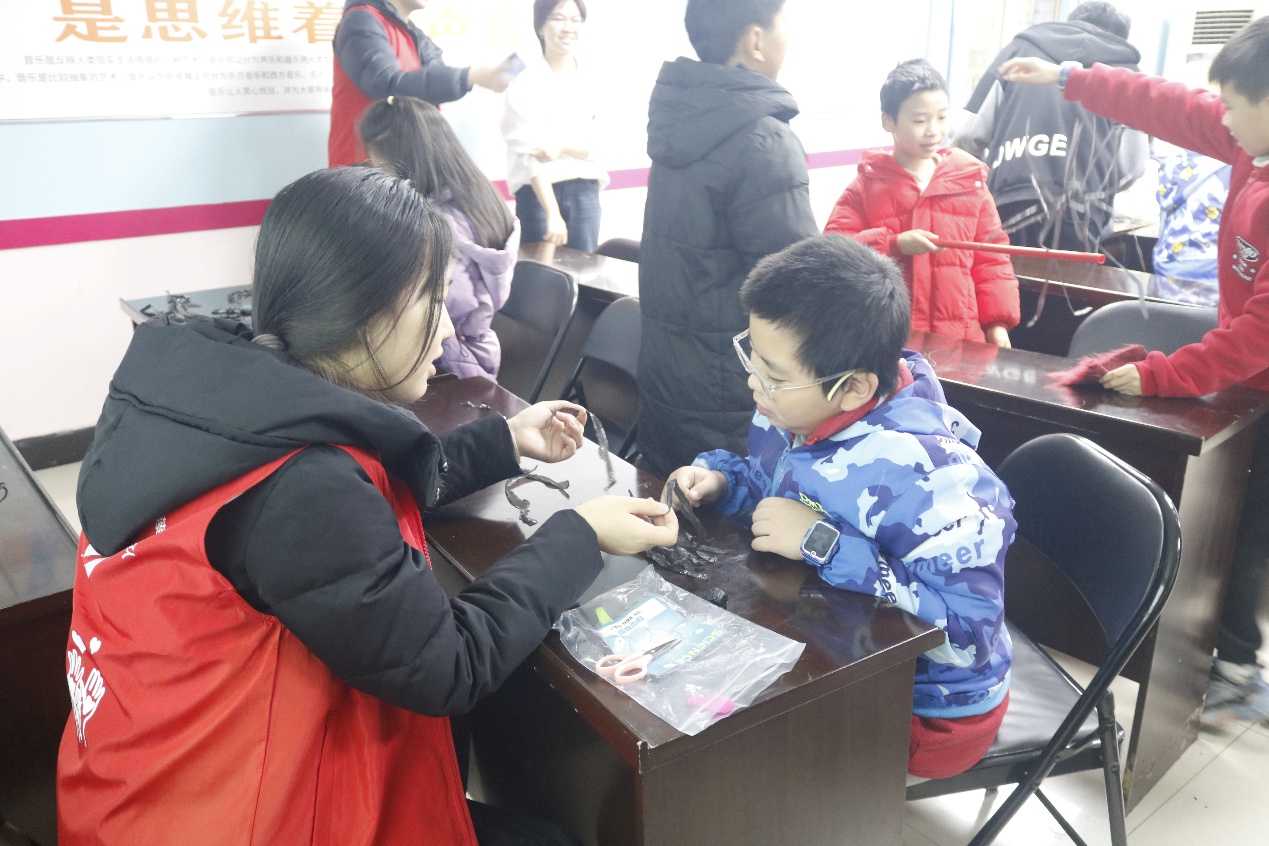 活动现场,人工智能学院“小红帽”常青藤青年志愿者服务队的志愿者以“电子转移”为核心,以丝绸摩擦玻璃棒、毛皮摩擦橡胶棒的经典实验为切入点,向孩子们讲解静电现象的原理。为将抽象的科学知识变得直观有趣,志愿者带领孩子们开展手工实验:将垃圾袋剪成章鱼形状,通过丝绸摩擦橡胶棒产生静电,让“章鱼”在空中飘起,奇妙的实验现象瞬间点燃了孩子们的探索热情。
