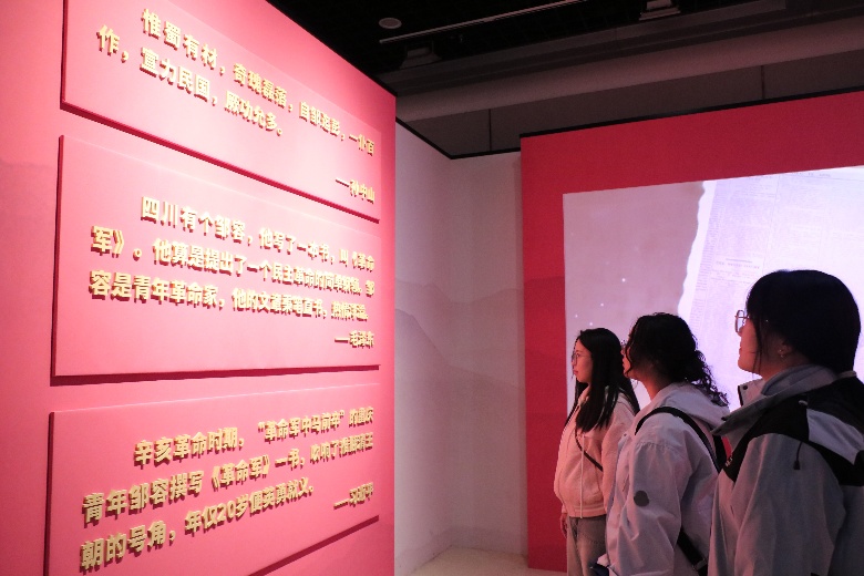 活动伊始,队员们在邹容烈士纪念碑前整齐列队,集体敬献鲜花。活动中,队员们认真聆听邹容曾孙——邹小谷先生讲述先辈革命事迹,感悟邹容精神的内核。随后,队员们沿母城步道徒步约两公里,沿途先后路过重庆市劳动人民文化宫、重庆文化宫大剧院、重庆市人民大礼堂等文化地标,聆听相关历史故事,最终抵达三峡博物馆参观邹容生平史实展。