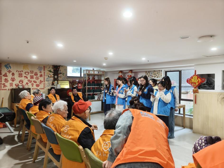 趣味互动过后,温情的文艺表演如约而至。志愿者们结合老人们的人生阅历与审美喜好,精心排练了《歌唱祖国》《难忘今宵》两首经典歌曲。熟悉的旋律响起,尘封的记忆被唤醒,温暖的歌声里,饱含着对祖国的热爱、对岁月的感怀,更藏着对老人们的美好祝福,温情与敬意在歌声中传递,让敬老院暖意融融。