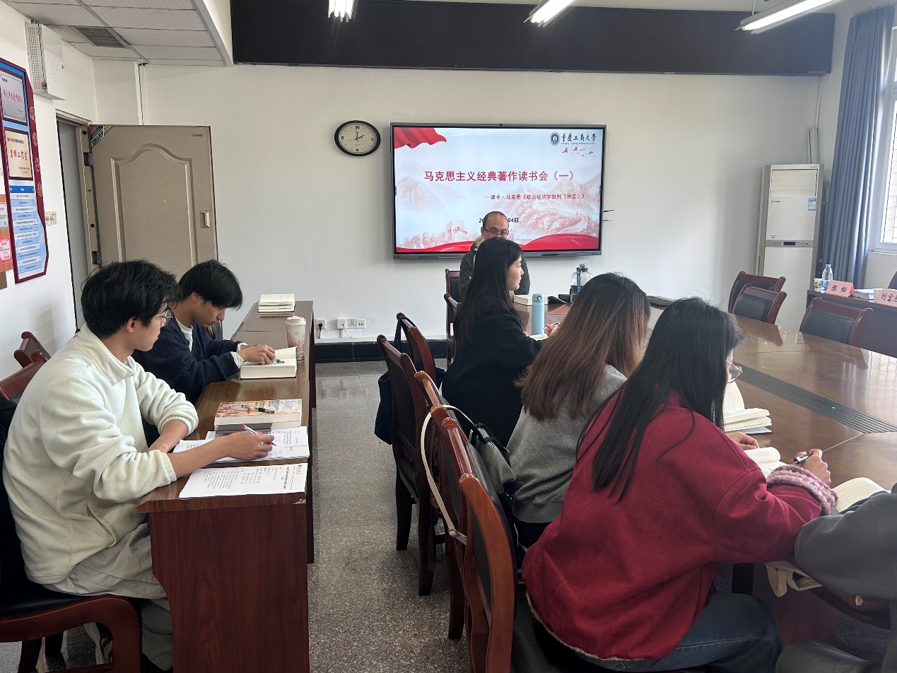为深入学习领会历史唯物主义,以历史、整体、辩证的眼光认识中国特色社会主义经济实践,3月4日下午,马克思主义学院在慧智楼1210教室开展新学期马克思主义经典著作首场读书会。本次读书会由马克思主义学院博士王佳鑫主讲,马克思主义基本原理教研室老师曾冰,法学与社会学学院部分同学及马克思主义基本原理方向2025级硕士研究生共同参与。
