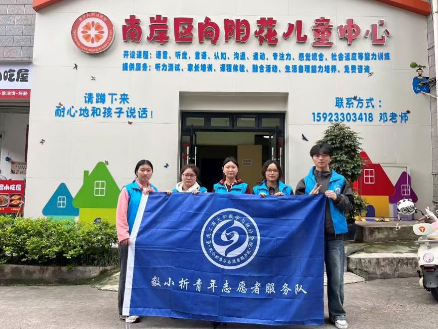 3月19日下午,数学与统计学院“数小析”青年志愿者服务队走进重庆市南岸区“向阳花”儿童康复中心,组织开展“青春伴成长 志愿暖童心”主题助残活动,旨在用实际行动为特殊儿童送去关怀与温暖,用青春力量点亮孩子们的成长之路。