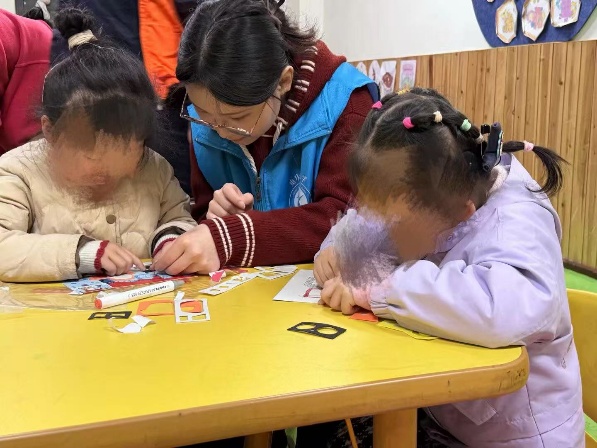 活动伊始,志愿者们与孩子们围坐在明亮的教室里,耐心陪伴孩子们进行手工创作、绘画启蒙等趣味活动。在手工课上,志愿者们手把手指导孩子们粘贴彩纸、拼接图案,鼓励他们大胆发挥想象力;在绘画环节中,志愿者们俯身倾听孩子们的想法,握着稚嫩的小手一同勾勒线条、涂抹色彩,用温柔的陪伴化解孩子们的拘谨与不安。一张张充满创意的手工作品、一幅幅天真烂漫的画作,不仅见证了孩子们的点滴进步,更承载着志愿者们的爱心与期许。