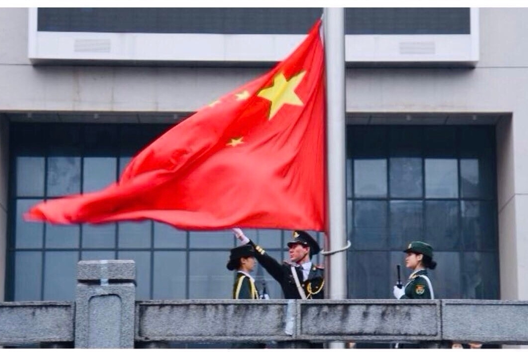 在全体师生的注目下,英姿飒爽的国旗护卫队队员们踏着铿锵有力的步伐,将鲜艳的五星红旗护送入场,伴随着庄严的《义勇军进行曲》,五星红旗冉冉升起,全体师生肃立致敬,齐唱国歌,爱国情怀与责任担当在心中悄然升腾。
