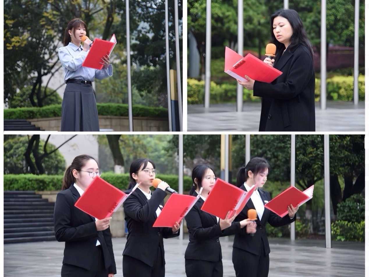 随后,谭焱鑫宇、熊雪宏、曹玉琳、周心然带来学雷锋主题朗诵,以“春风回响”“精神颂歌”“校园行动”“誓言永恒”四幕递进,用铿锵有力的话语、饱含深情的演绎,回顾雷锋事迹、传递奉献精神,号召重工商大学子“在走廊里弯腰捡起纸屑,在课堂上耐心讲解难题”,从点滴小事做起,争做新时代雷锋精神的传承者与践行者,让雷锋精神在校园落地生根。