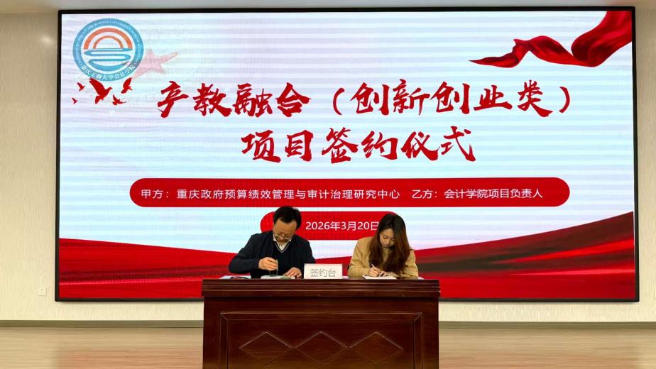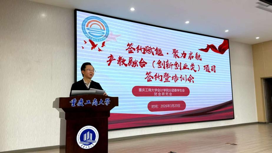 为积极深化产教融合,进一步提升广大同学的创新创业意识与实践能力,3月20日,会计学院在明德楼1019举行产教融合项目签约仪式暨培训会。会计学院党委副书记、纪委书记郝颖,会计学院学科建设办公室主任、重庆市政府绩效评价研究中心副主任杨兴龙,会计学院辅导员郑志欣,十支重点项目的团队成员及代表参加。