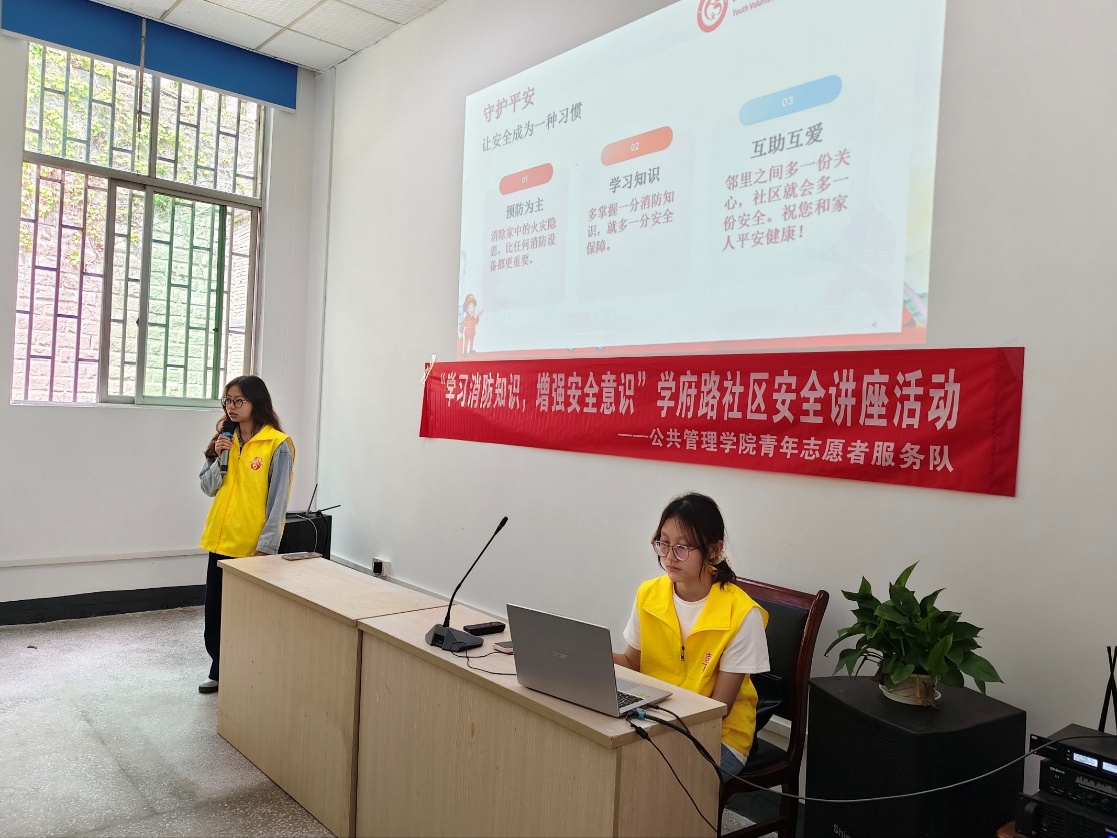 为进一步普及消防安全知识,增强社区居民的安全防范意识与应急避险能力,4月9日下午,公共管理学院青年志愿者服务队走进学府路社区,开展了“学习消防知识,增强安全意识”消防安全宣讲活动。