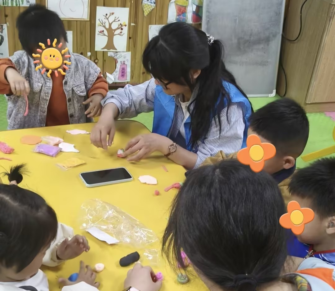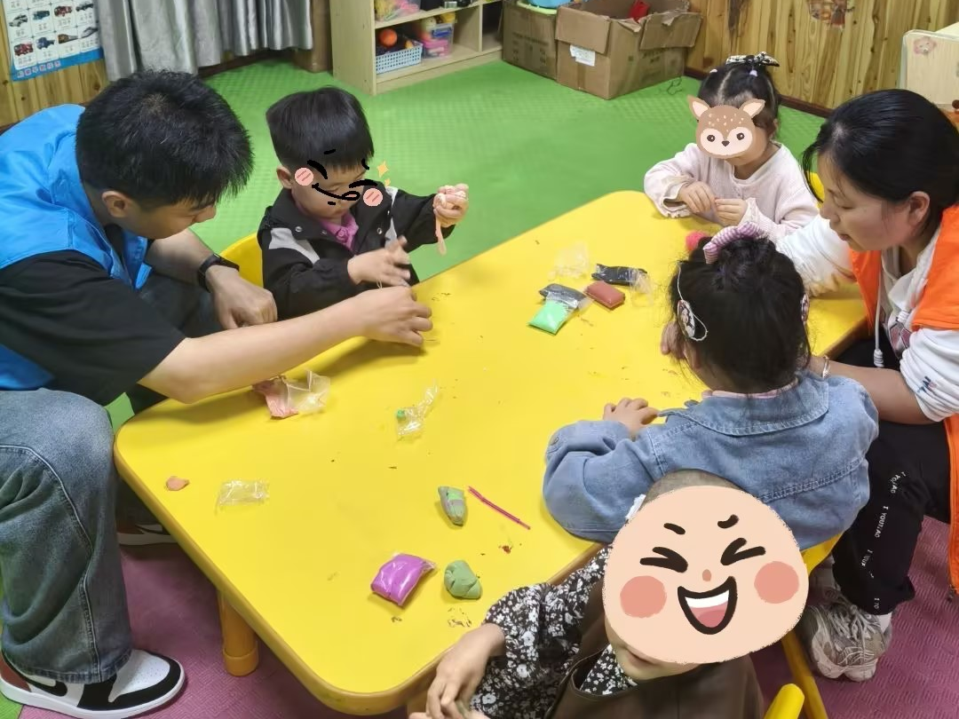 活动前期,志愿者们与向阳花特殊儿童康复中心负责人完成对接,明确活动时间、场地及儿童基本信息,开展志愿者招募与培训工作,筹备贴纸画、超轻黏土等活动物资,保障活动规范有序进行。活动现场,志愿者们以一对一形式陪伴7至8岁特殊儿童,依次开展贴纸画创作、超轻黏土手工活动。志愿者们语气温和、动作轻柔,严格遵循陪伴规范与隐私保护要求,不设定完成目标、不催促进度,充分尊重儿童参与节奏,引导儿童自由创作、感受乐趣,现场氛围温馨有序。活动尾声,志愿者们共同清理活动场地,整理并回收活动物资,与儿童及机构工作人员有序告别。