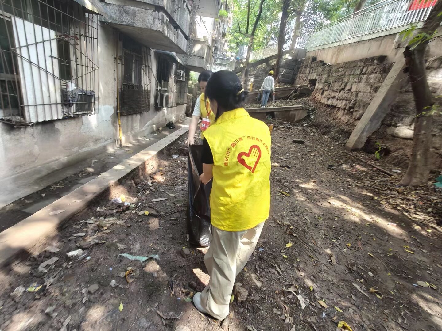 活动期间,志愿者们按照既定分工,分区域、分岗位开展清洁任务。在街道公共区域,路面清扫组志愿者手持扫帚,对街道主路、人行道的烟头、纸屑、落叶等零散垃圾进行集中清理;垃圾捡拾组志愿者则拿着夹子,弯腰清理绿化带、墙角缝隙、路灯杆下等扫帚难以触及的卫生死角,将隐蔽的垃圾捡起。在楼栋内部区域,扶梯擦拭组志愿者提着水桶、攥着抹布,从上到下细致擦拭楼梯扶手的灰尘;另有志愿者清理楼道内的纸屑、塑料袋、烟头等细碎垃圾。为居民打造整洁、清爽的居住环境。整个过程中,志愿者们分工协作、密切配合,不怕脏、不怕累,以实际的行动让罗家坝社区的环境卫生得到显著改善。