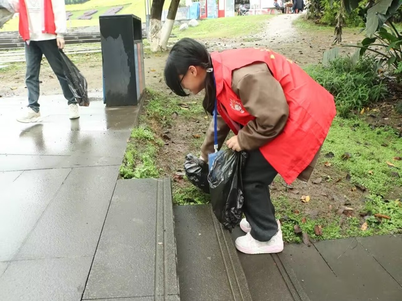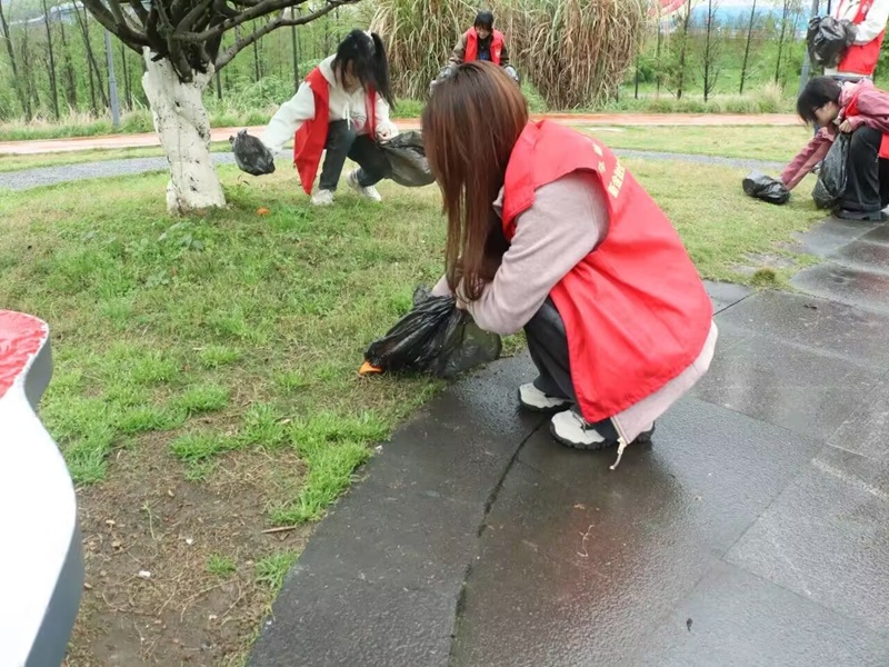 为用实际行动守护长江生态环境,践行绿色发展的青春誓言,3月28日下午,金融学院“星火”青年志愿者服务队在重庆大鱼海棠公园开展了以“河小青”为主题的垃圾清理志愿服务活动。