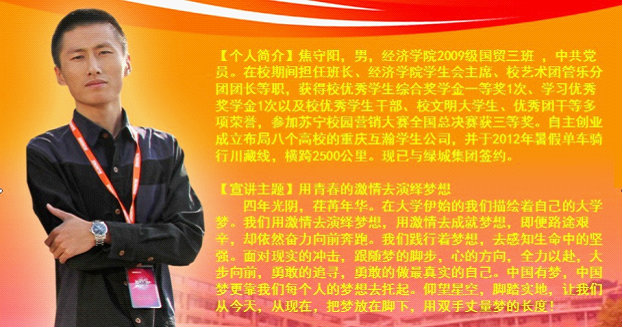 ——经济学院09国贸三班 焦守阳《用青春的激情去演绎梦想》